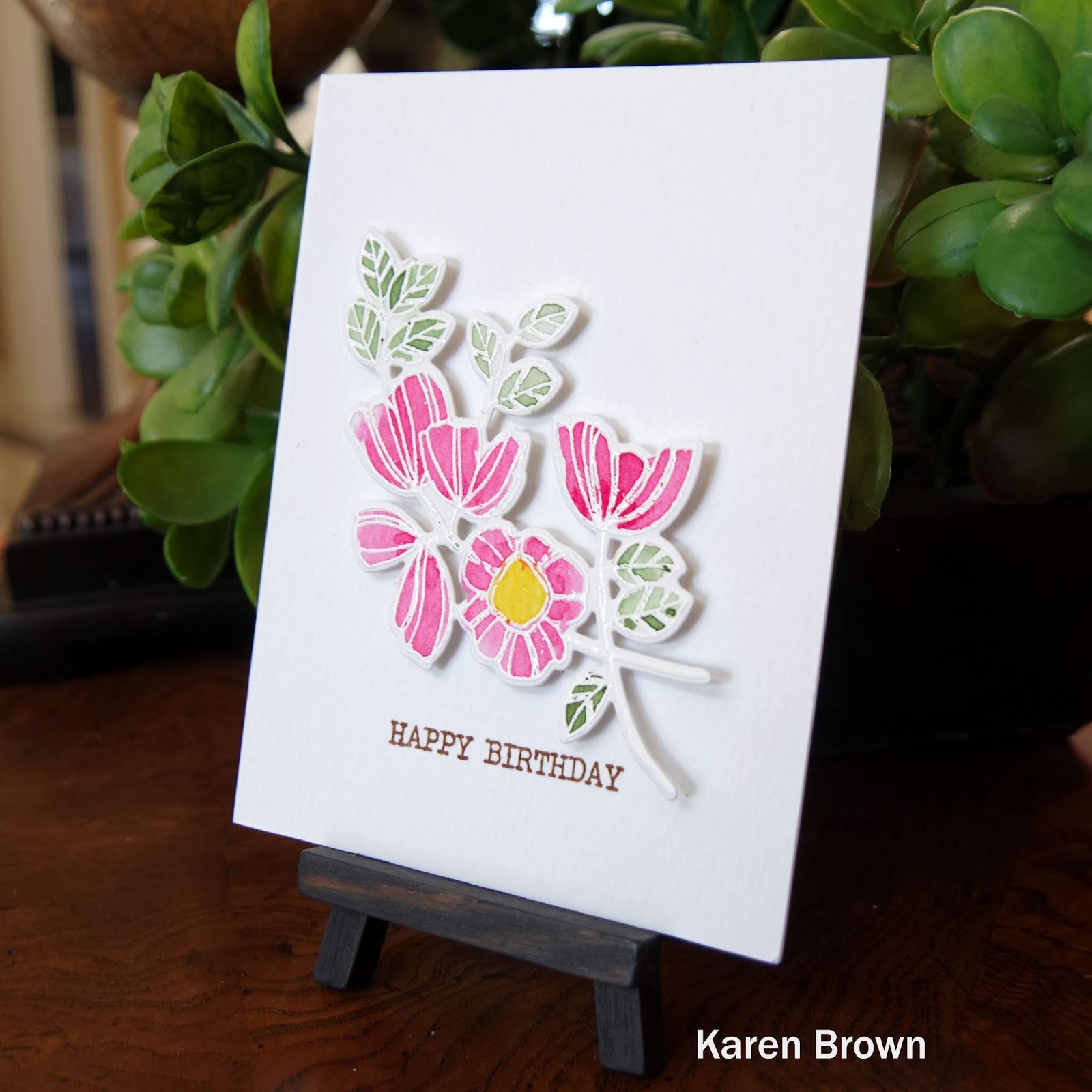 3. So pretty, Karen! I'm sure your sister loved it! Loving the bright pops of colours on the flowers! I agree, I love the texture of watercolour paper! 🙂