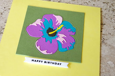 I have orange and pink potted Hibiscus plants around my pool and I used them as the inspiration for this card.  I started by ink blending all the colors I wanted on watercolor paper.  I like that watercolor paper is a bit thicker and has more texture and makes a rich substantial diecut. Next, I diecut the components of my card and the sentiment.