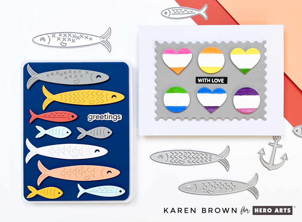 Hello friends! Karen Brown here today sharing two cheerful cards created with products from the Hero Arts Packed with Love Collection. I love when a release offers versatility, and this collection made it easy to explore different looks while keeping the designs clean, playful, and approachable.