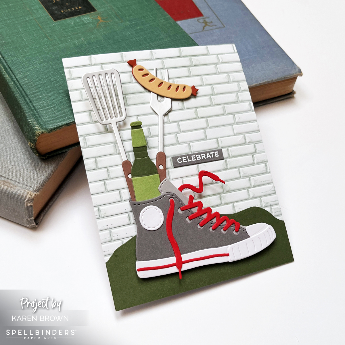 The die-cut sneaker bouquet is the star here. I even used silver cardstock for the grilling utensils, which adds a realistic metallic look.