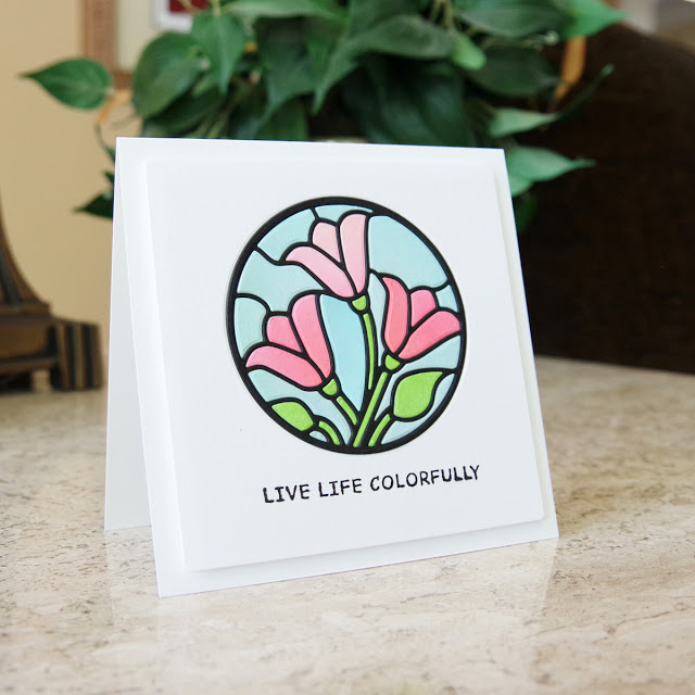 • Spellbinders Tulip Trio Stained Glass Bouquest Etched Dies (diecut circle spotlight)