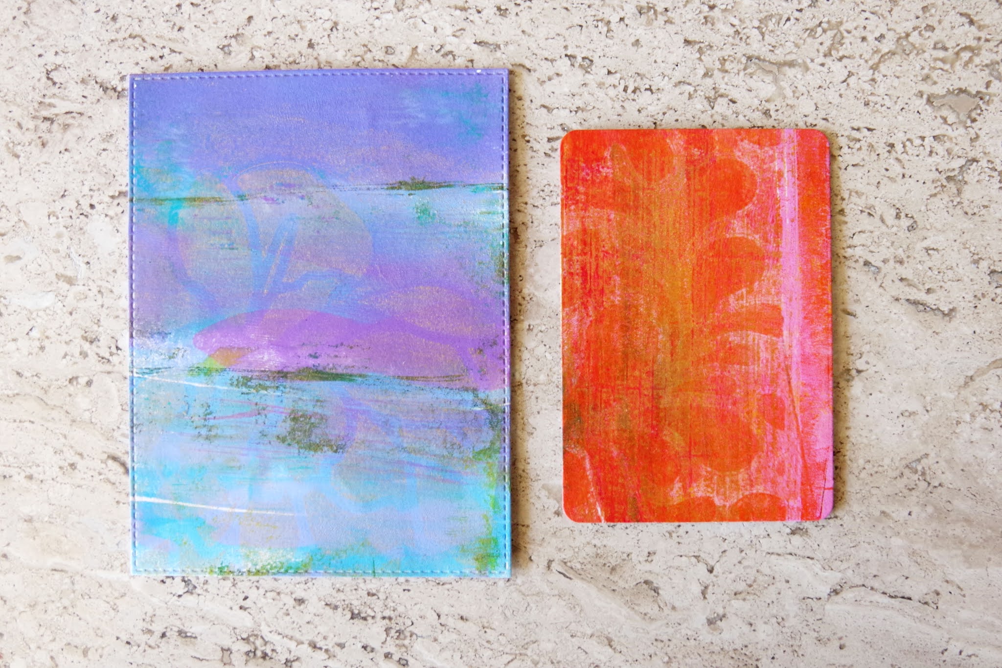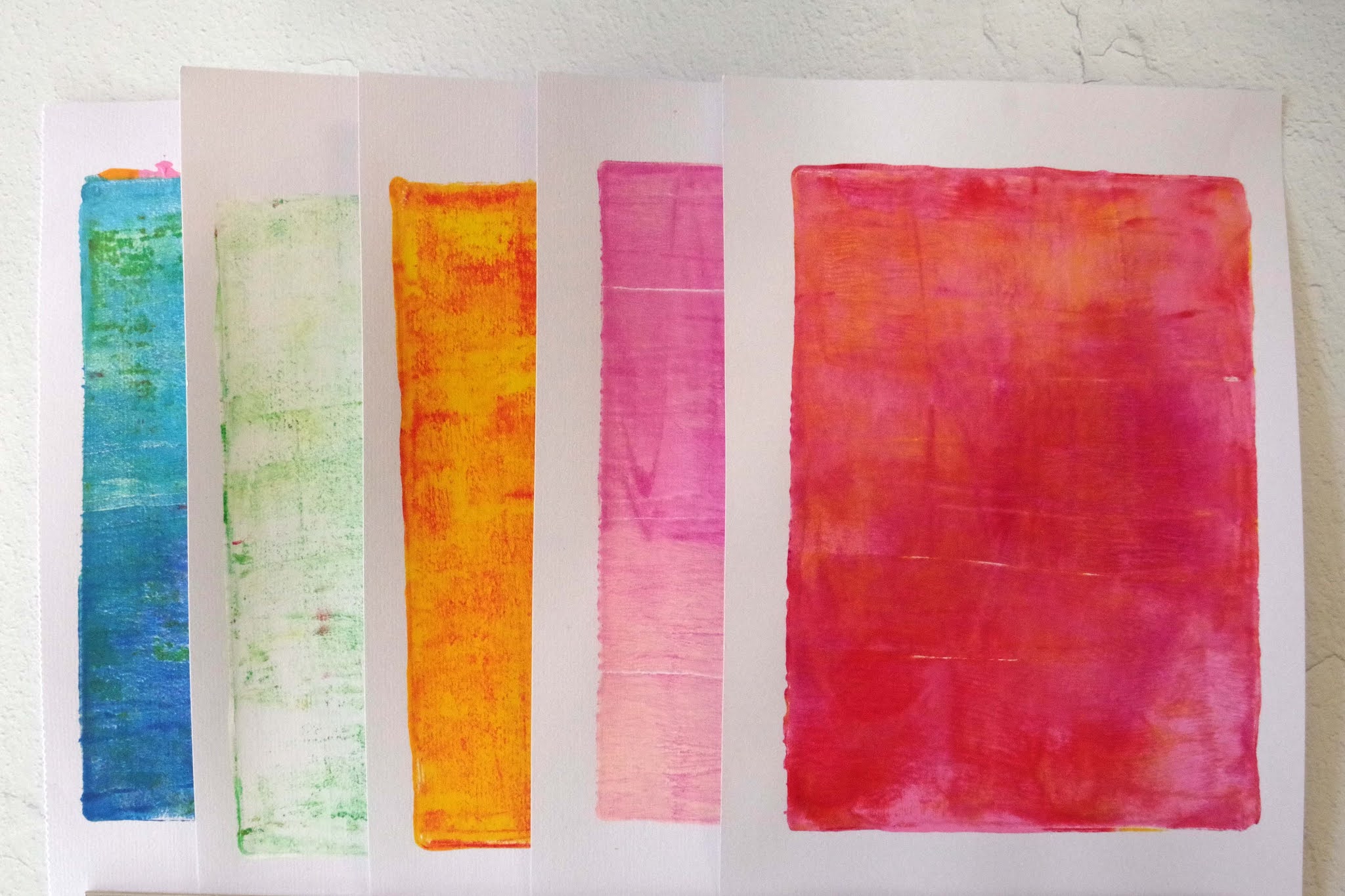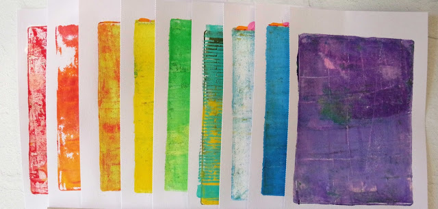Rainbow Gel Press monoprint card.Die Cutting With Gel Press Prints