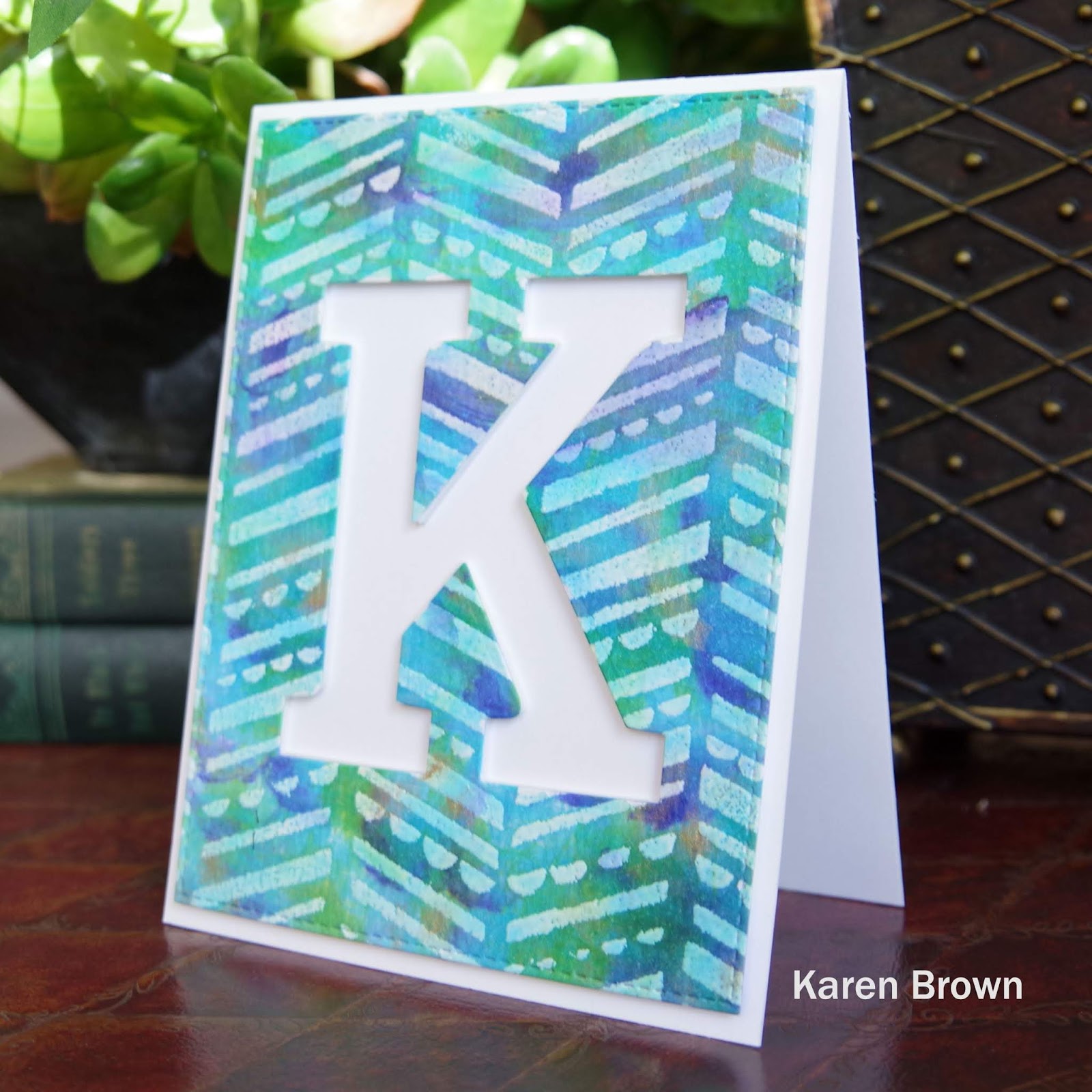 • After the watercolor panel was dry, I die cut the \”K\” from Altenew\’s Mega Alphabet die collection.