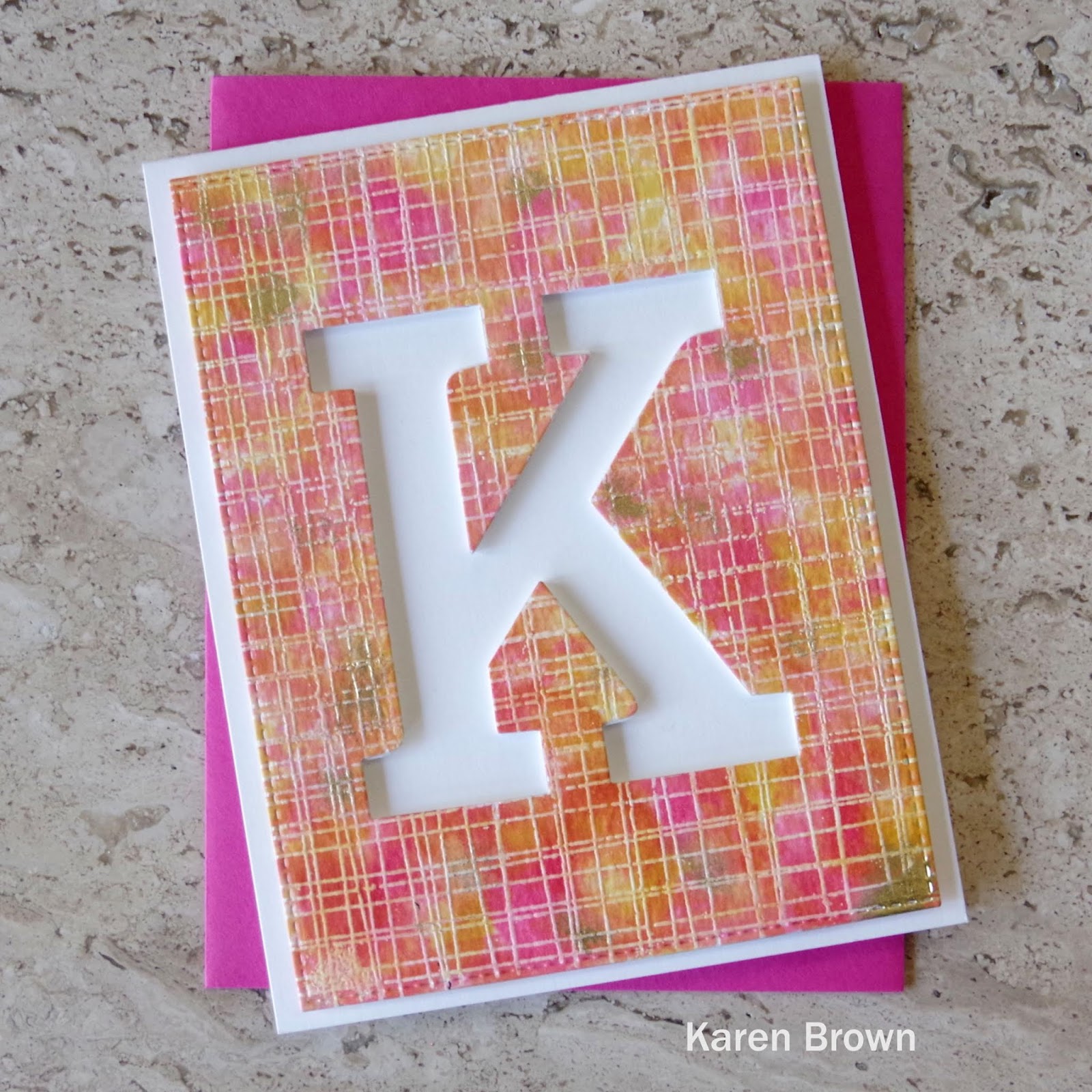 4. After my panel was dry, I glued craft foam on the back and die cut the K.  The great thing is that you wind up with two cards.
