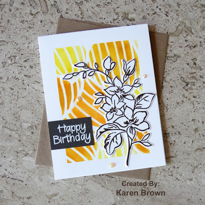 Each work station had a silicone mat, microfiber cloth, blending brush, stamps, stencils, washi tape, A2 card panels, two die cut sentiments, acrylic blocks, ink, liquid glue, A2 card bases, colored envelops, tags and ribbon.