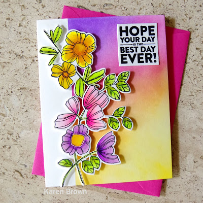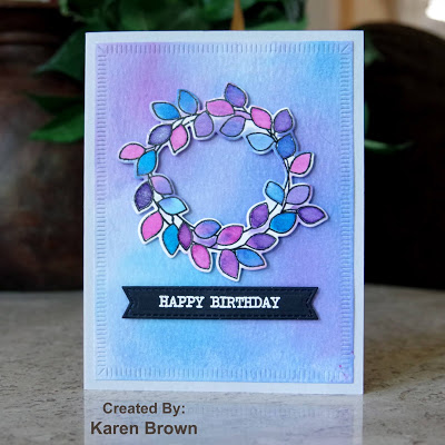 I thought a wreath would look pretty around the sentiment and I colored the leaves with my Altenew watercolor brush markers for a bright cheerful card.