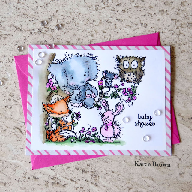 I love a good scene card and when I saw Tina Smith’s Windows With A View Collection, I was immediately smitten! I needed a baby shower card and I knew the tire swing in this kit would be perfect.