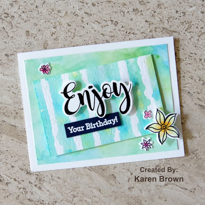 - I also wanted a bright fun background so I made my own glitter paper. First, I taped some watercolor paper to a hard board and brushed water over the surface. Then I mixed Salty Ocean and Mermaid Lagoon Distress Inks with Shimmer Spray (no water was added) and I painted it on the watercolor paper. I wanted an intense color so I applied three layers but I didn’t bother to let it dry in between. The background is so pretty in person but its hard to see the sparkle in the photos so I added a quick video below.