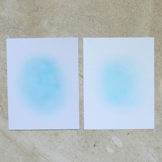 PRO TIP: I blended one background on Neenah (Birthday) and the second on Bristol (Healing Wishes) to see which provided a smoother look. The Neenah panel (below left panel that is now the Birthday Card) is whiter but the Bristol (right panel that is now the Healing Wishes card) is far easier to blend on and resulted in a smoother background. In the future, I will remember to blend my backgrounds on Bristol cardstock.