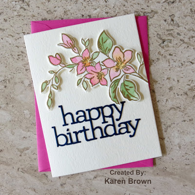 I really like this feminine spray and think the navy die-cut sentiments are beautiful and anchor the look of this set.
