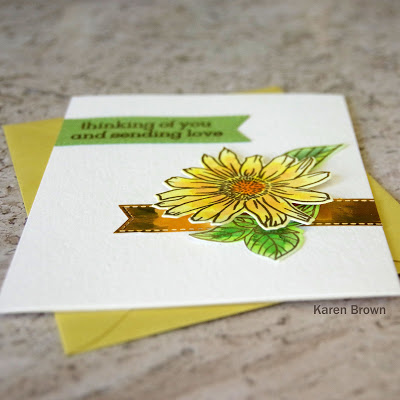 I added a hot foil sentiment: Spellbinders Mini Everyday Sentiment (GLP-260) with Pink Foil (GLF-006).