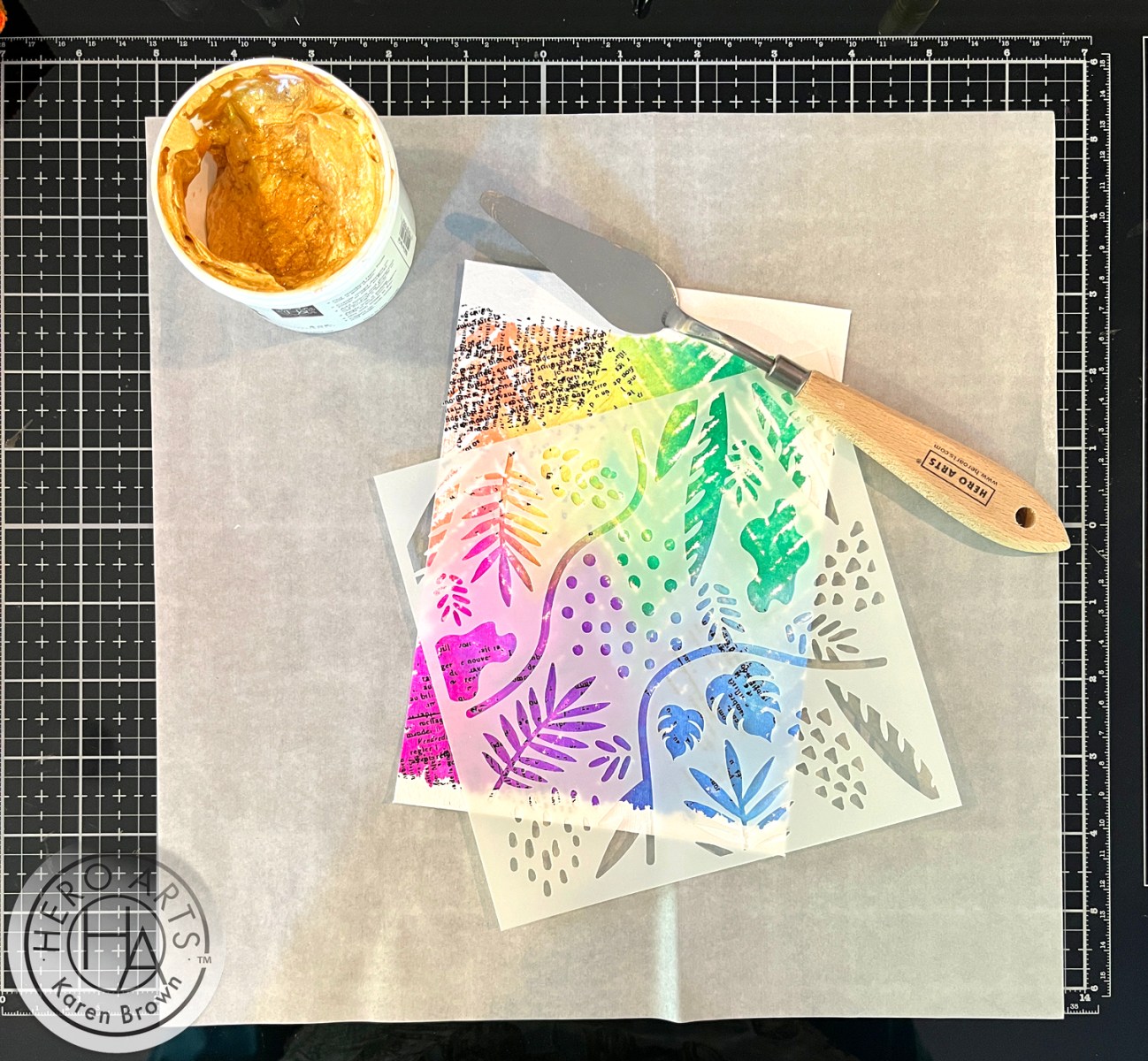 - I started by lightly ink blending Tangerine Core Ink onto Watercolor Paper and let the panel dry.