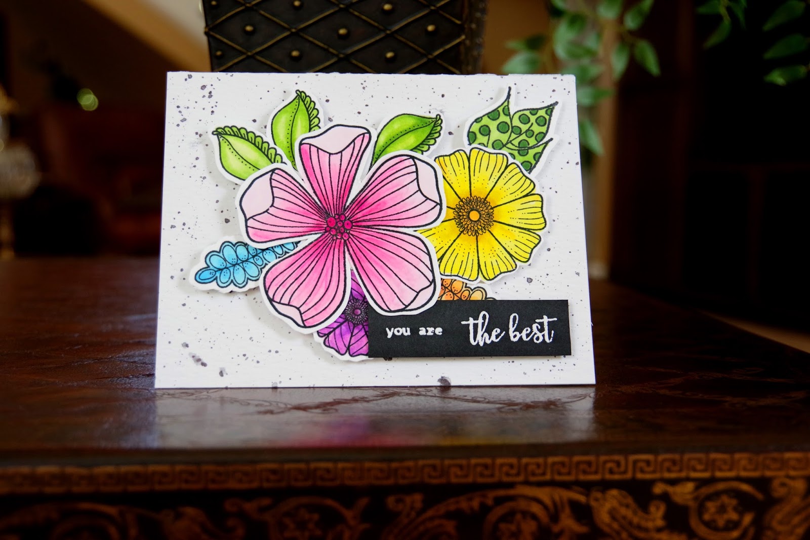 For the next card, I switched things up with a cool-toned, gradient background using Pool Party, Paradise, and Blue Raspberry inks. The result? A soft, dreamy floral backdrop that’s perfect for spring!