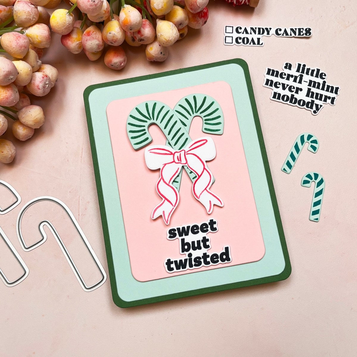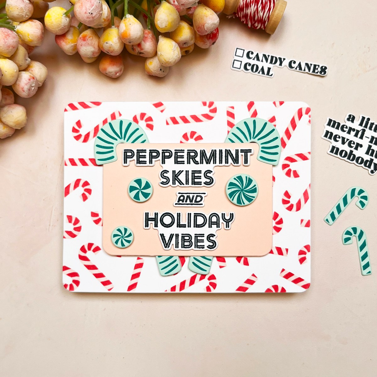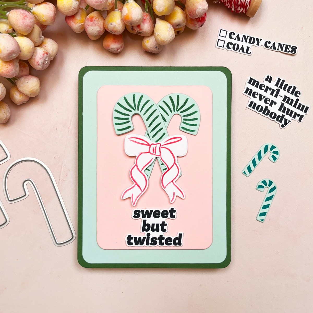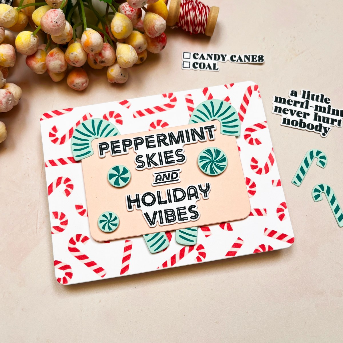 I die-cut the panel with the Hero Arts Rounded Jewel Infinity Dies—I think this soft shape fits the cozy vibe perfectly. Then I added craft foam behind the panel and mounted it onto a ColorWheel Rainforest green A2 card base.