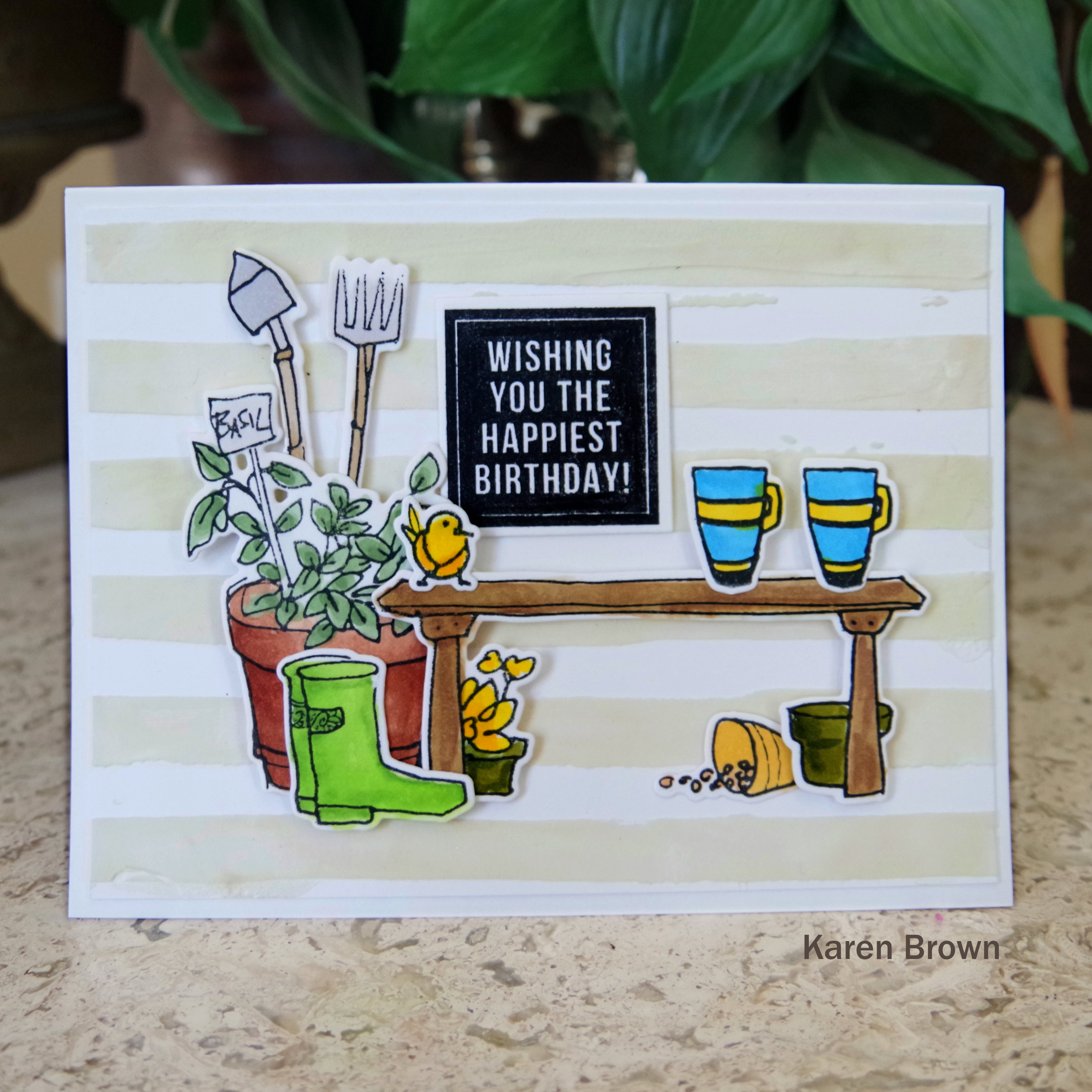 Glitter and shine….sometimes it is fun to add a little sparkle to a card! Today I used some Glitter Cardstock to make an ultra girly card. I used glitter cardstock as the bottom layer on my blooms, flower centers and sentiment. I created this card to be part of Altenew’s Educator Instagram Hop and we’d love for you to “hop” along with us. You can start at @altenewllc and my IG hande is: karens_mini. Hope to see you!