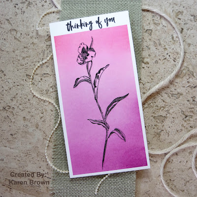 I originally tried a single color mat but it felt flat. Splitting the mat—Coral on the left, Azalea on the right—instantly made the card pop with contrast. I layered on a cluster of Copic-colored florals from the Wild Flower Bundle, a heat-embossed “Thinking of You” sentiment (included in the bundle) in white on black cardstock, and five black enamel dots for a finishing touch.